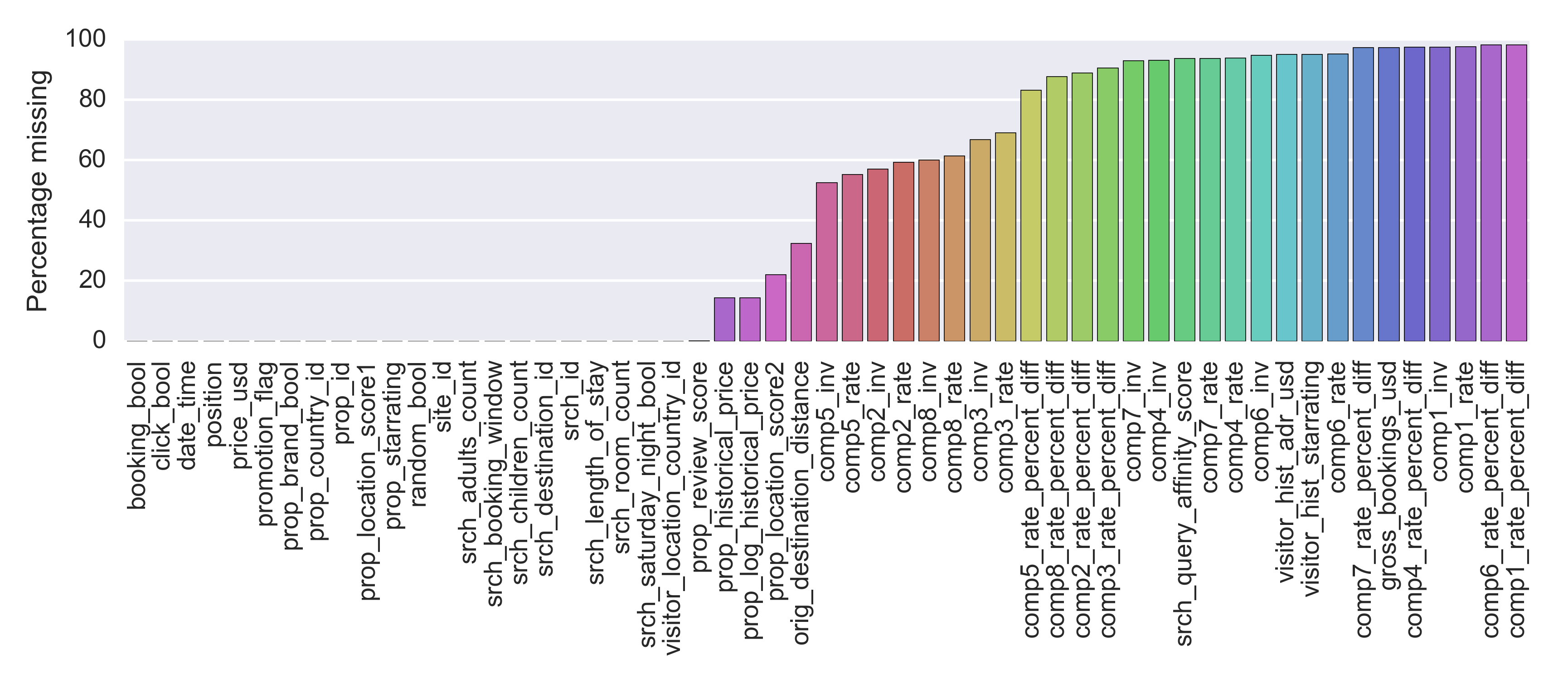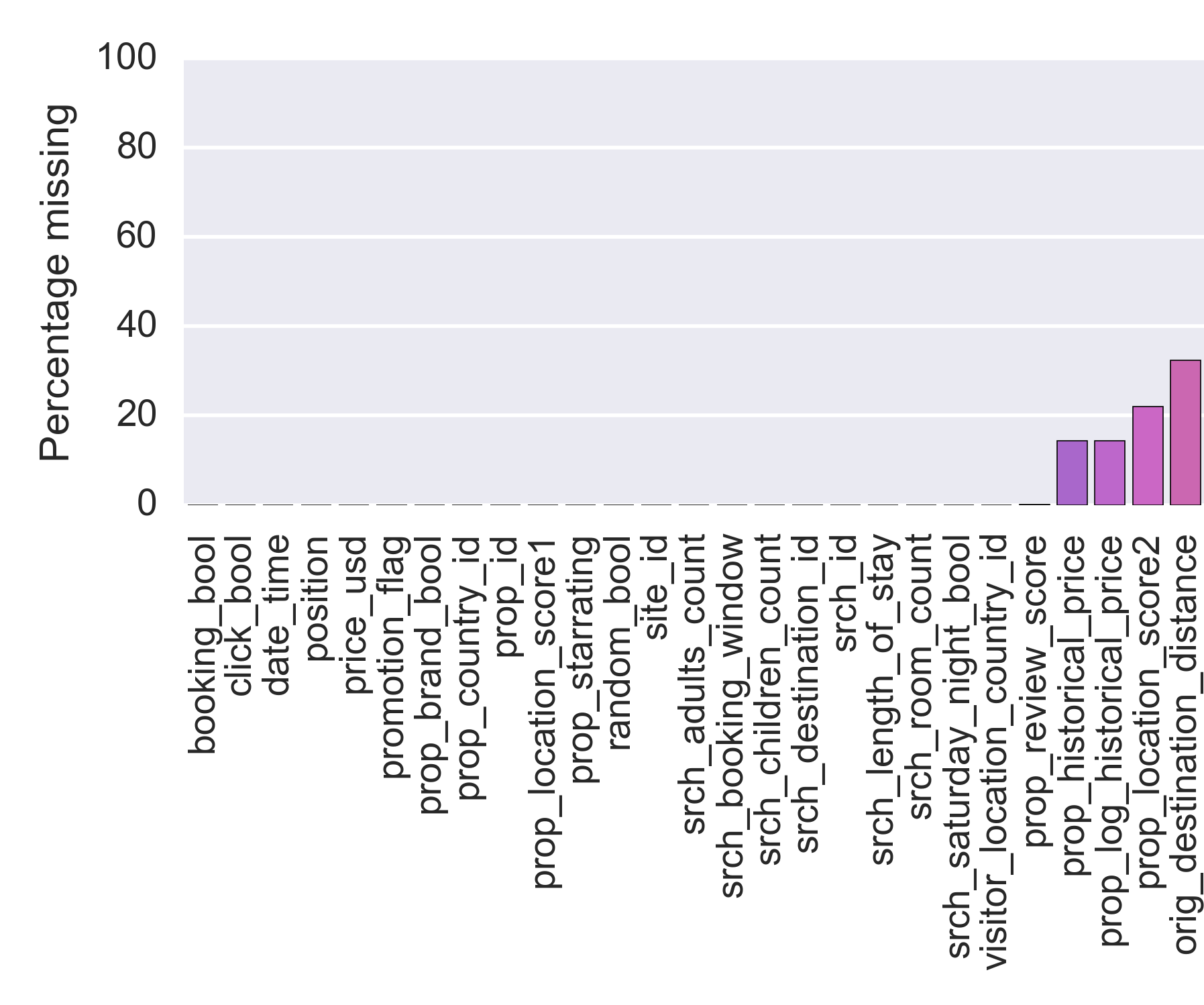 Do this for the $$ \verb|prop_starrating|, \verb|prop_review_score|, \verb|prop_location_score1|, \text{and } \verb|prop_location_score2| $$
