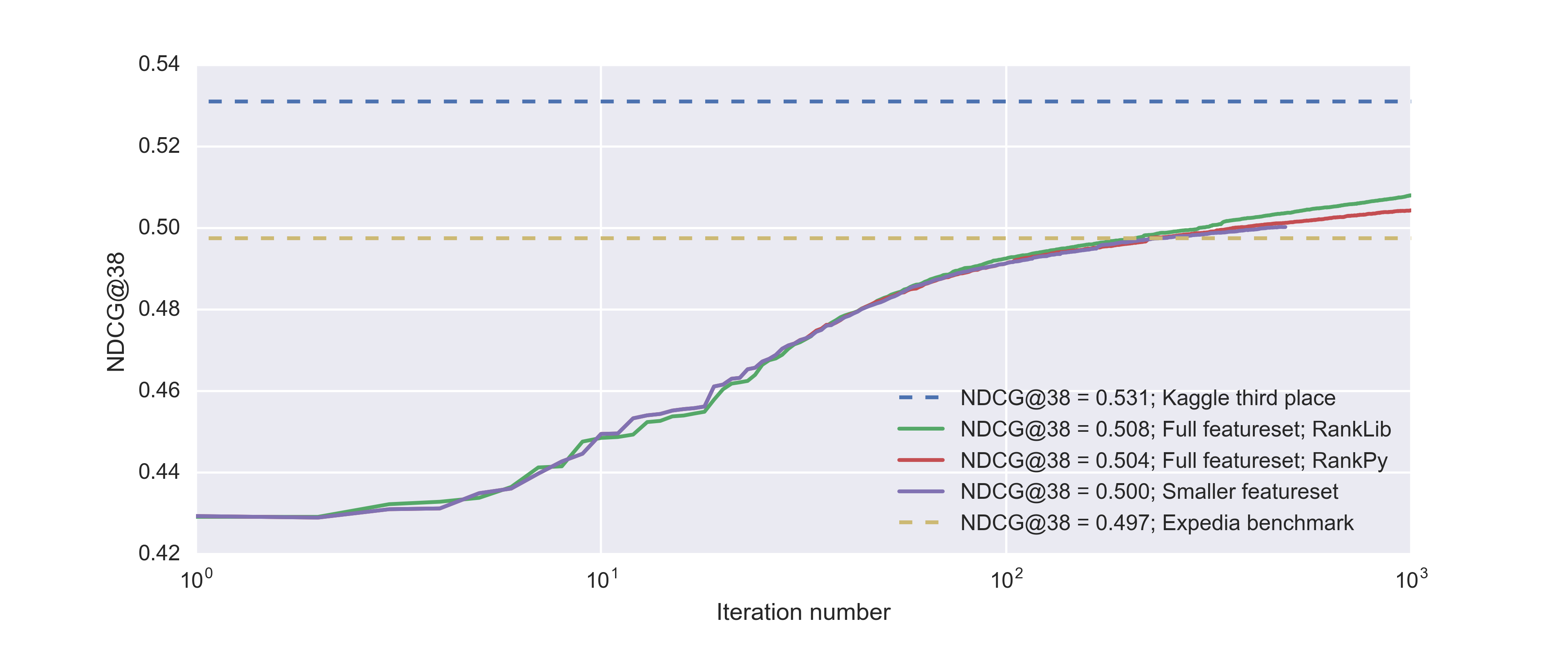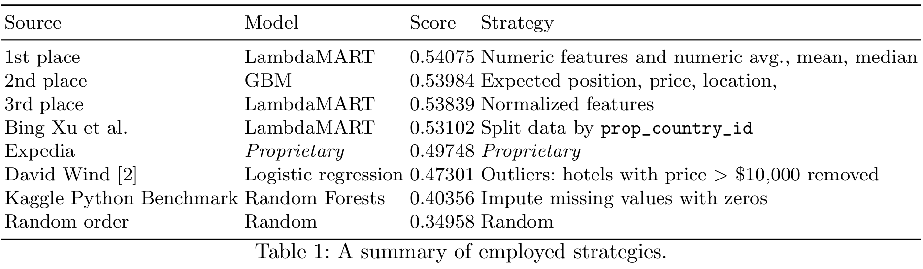[1] (5th place) X. Liu, B. Xu, Y. Zhang, Q. Yan, L. Pang, Q. Li, H. Sun, and B. Wang. Combination of Diverse Ranking Models for Personalized Expedia Hotel Searches.